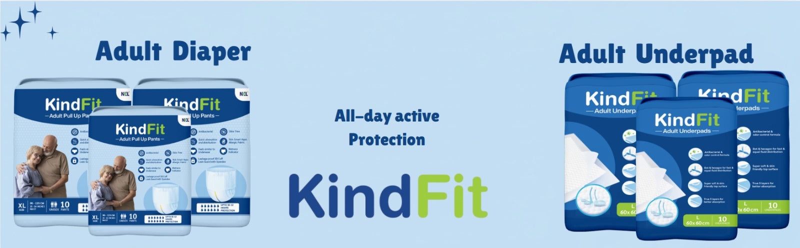 Kindfit Adult Underpads provide reliable protection for beds and furniture. Made with a soft top layer and high absorbent core, they prevent leakage, keep surfaces dry, and help maintain hygiene for daily and medical use.